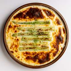 白と緑。対比も美しい『グリーンアスパラガスのチーズソースグラタン』