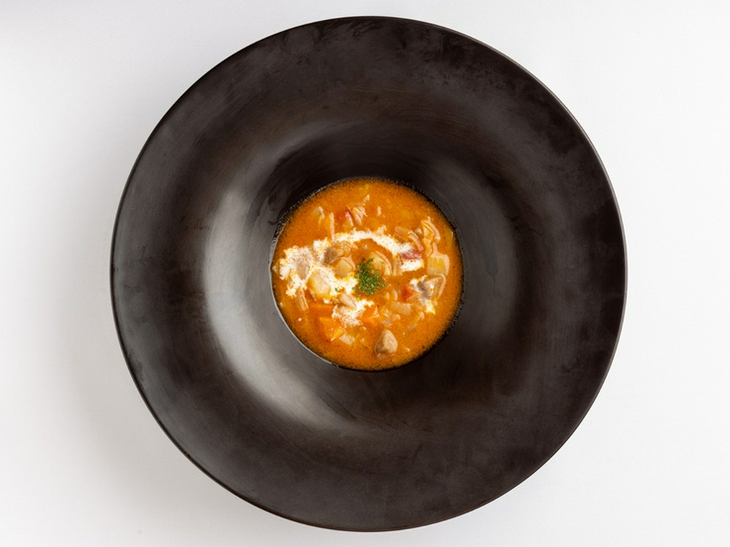 黒毛和牛の当日オススメ部位を、小ねぎでも特に細長い高等ねぎ(鴨頭ねぎ)に、包み込んだ逸品。青々とした見た目も印象的。牛肉のブイヨンベースに10種のスパイスを掛け合わせた、特製ソースと楽しめます。