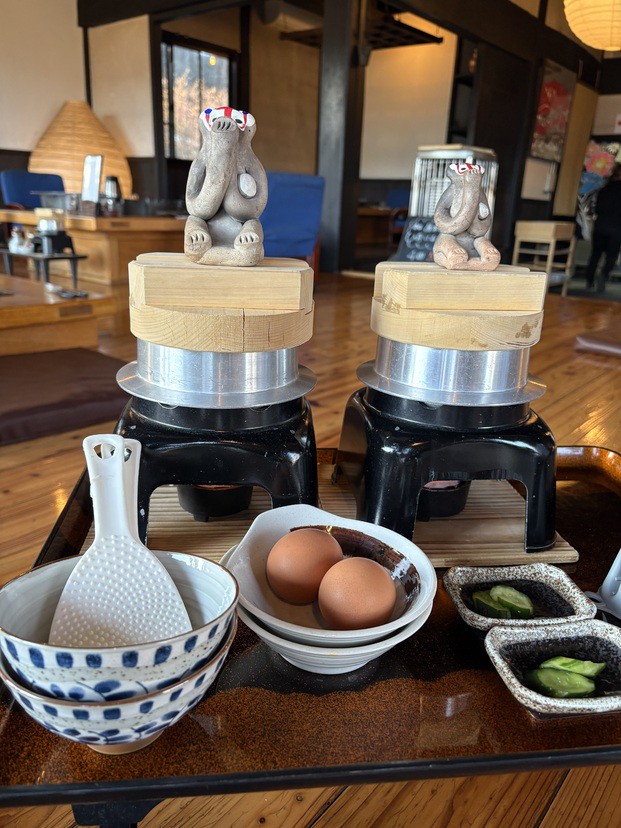 阿蘇カルデラ南に位置する南阿蘇村の一軒。生命力溢れる木々と大空を眺めつつ、のんびりと食事を楽しめるお店です。食材は阿蘇の伏流水が育んだおいしいお米に野菜、そして「あそび豚」をはじめとした地元の名物を使用。豊かな自然とその恵みを食を通して実感できます。料理を楽しむ合間に、明治初期の風情を残す古民家の趣きや、熊本の伝統工芸品に目を向けてみるのも一興。店内には半個室空間も完備されているほか、食後はテラスからの景色を楽しむことも。南阿蘇を満喫したい旅行客にもオススメできるこちらのお店。自然と囲炉裏が見守る和やかな一時は、日々の喧騒を忘れさせてくれます。