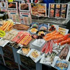 食べ応えたっぷりの海産物を気軽に楽しめるスポット。食べ歩きでの立ち寄りもオススメ