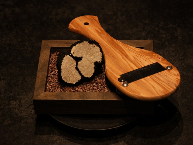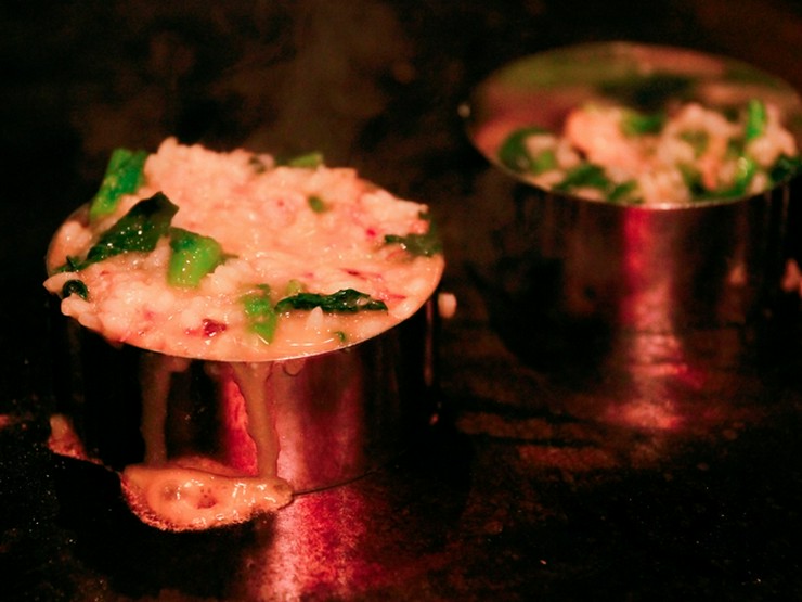 まぁるいセルクルにリゾットを流し入れ、表面をこんがり焼き上げることでカリッとした食感を演出。鼻をくすぐる香ばしい香り、目の前で繰り広げられるパフォーマンスもごちそうです。