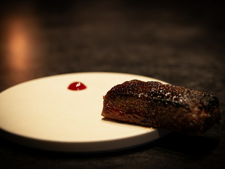 ザクザク食感のラスクに国産白レバーを乗せ、表面をキャラメリゼした一品です。低温で絶妙に火を入れたレバーはねっとりと濃厚で、食感のコントラストが秀逸。ワインのお供にぴったりです。