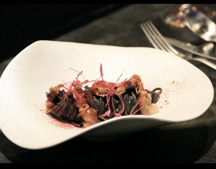 イタリア・カプート社の小麦粉に卵黄のみを加え、イカ墨をふんだんに練り込んだ自家製のタリオニーニ。本場さながらのレシピで仕上げる一品は、濃厚な旨みが広がります。