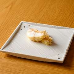 生で味わってもおいしい上質な雲丹を贅沢な天ぷらに。サクッと香ばしい薄衣、大葉の風味、中をレアに仕上げた雲丹が口の中で渾然一体となり、凝縮感のある甘みと旨み、まろやかな食感を堪能できます。