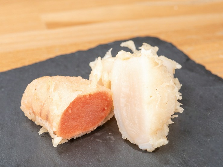 奥深いうま味を感じる『タラコの天ぷら』、素材の甘みも至福の味わい『ホタテの天ぷら』