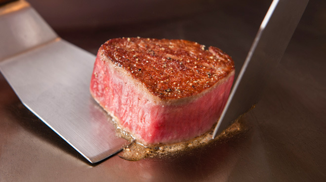 料理長が厳選した、食材と黒毛和牛や魚介類など、フレンチテイストを含んだメニュー、そしてシンプルな鉄板焼まで幅広くご堪能いただけます。またお客様の前でシェフが直接行うパフォーマンスは圧巻です。人気のメニューはやはり、ステーキで、お好みにより岩塩やわさび、ガーリックを乗せる事でより一層美味しくなります。また、パーティや記念日などのお祝い事などの際には各種プランもご用意しています。