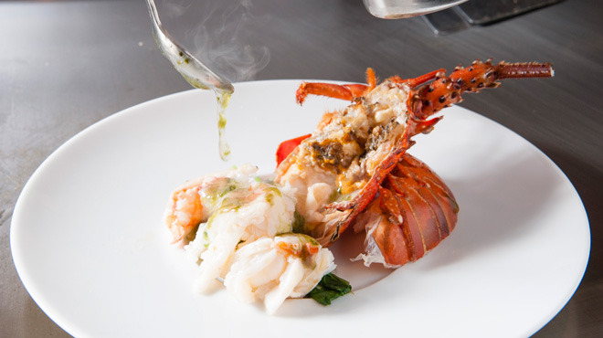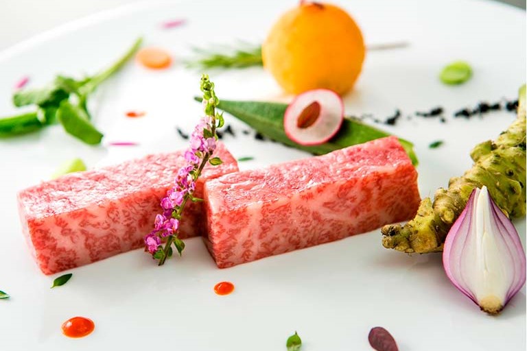 素材を活かしたフレンチと鉄板焼が融合したオリジナルコースを楽しめる