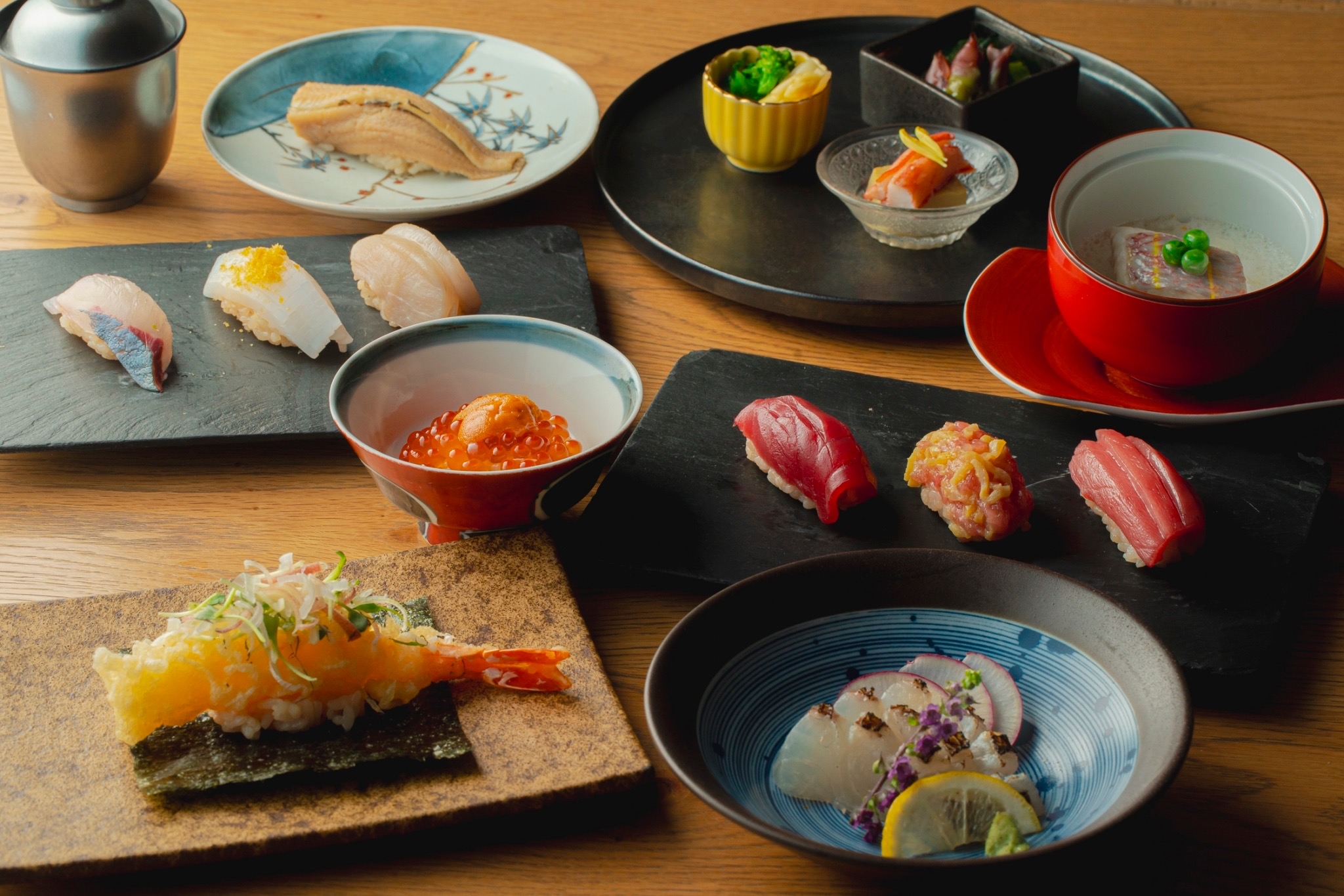 博多ならではの一品、お寿司をはじめとした九州のごちそうを取り揃えたメニューをお愉しみいただけます。職人が目の前で仕立てる賑やかな雰囲気のカウンター席や個室のご用意もございます。目の前で仕立てるお寿司や新鮮な魚介料理。四季折々の和食のご馳走をご用意した和食処のおもてなしをお楽しみください。