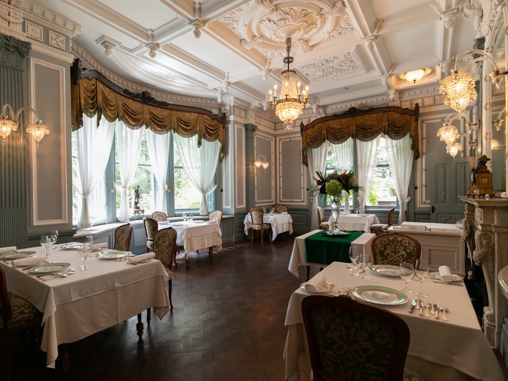 緑深い京都東山の麓に佇む、国指定重要文化財 長楽館(旧村井家別邸)。その洋館の中にあるのが【長楽館FRENCH LE CHENE】です。シャンデリアが灯るヴィクトリア調の優美な空間と、伝統を核に現代のアレンジを加えた料理の饗宴。ディナー、ランチ共にコースのみの提供となり、滋賀や京都大原の新鮮な野菜、丹波牛・七谷鴨・ぐじなどの京の食材を、フランス料理の手法を用いて表現しています。そんなシェフこだわりの料理を彩る食器も特別につくられたもの。季節の料理や食材、そして、それにふさわしい器との調和もまた、愉しみの一つです。館内では不定期ながらピアノの生演奏も。ピアノの音色に耳を傾けながら、優雅な時間を過ごせます。