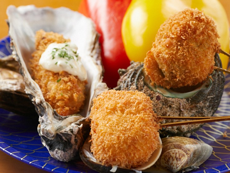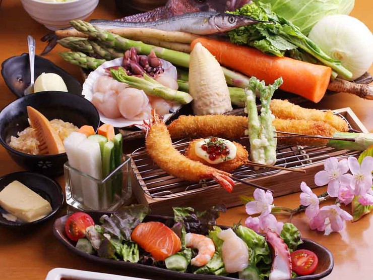 市場で仕入れたたくさんの旬食材を使った串揚げ15本と季節の料理を味わえるプラン。グランドメニューから選べる150分飲み放題が付いています。季節や仕入れ状況で串揚げの種類が異なるのも楽しみの一つ。