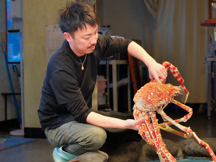 普段はなかなかお目にかかれない高足ガニを間近に見られるのも楽しみの一つ。優しいパパでもある佐藤さん曰く「高足ガニを召し上がらなくても記念撮影OKです」とのこと。子どもたちの喜ぶ顔が見られそうです。
