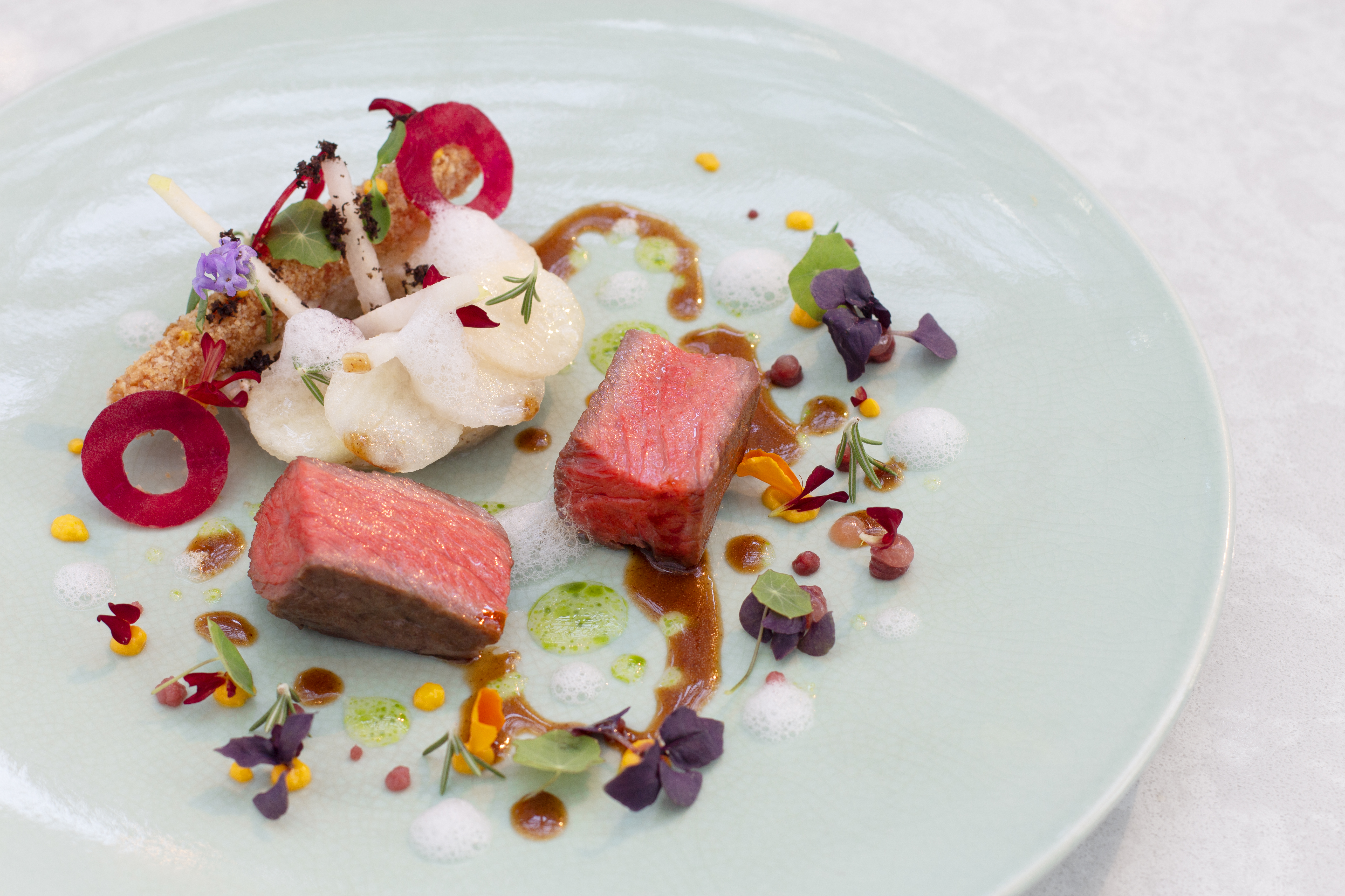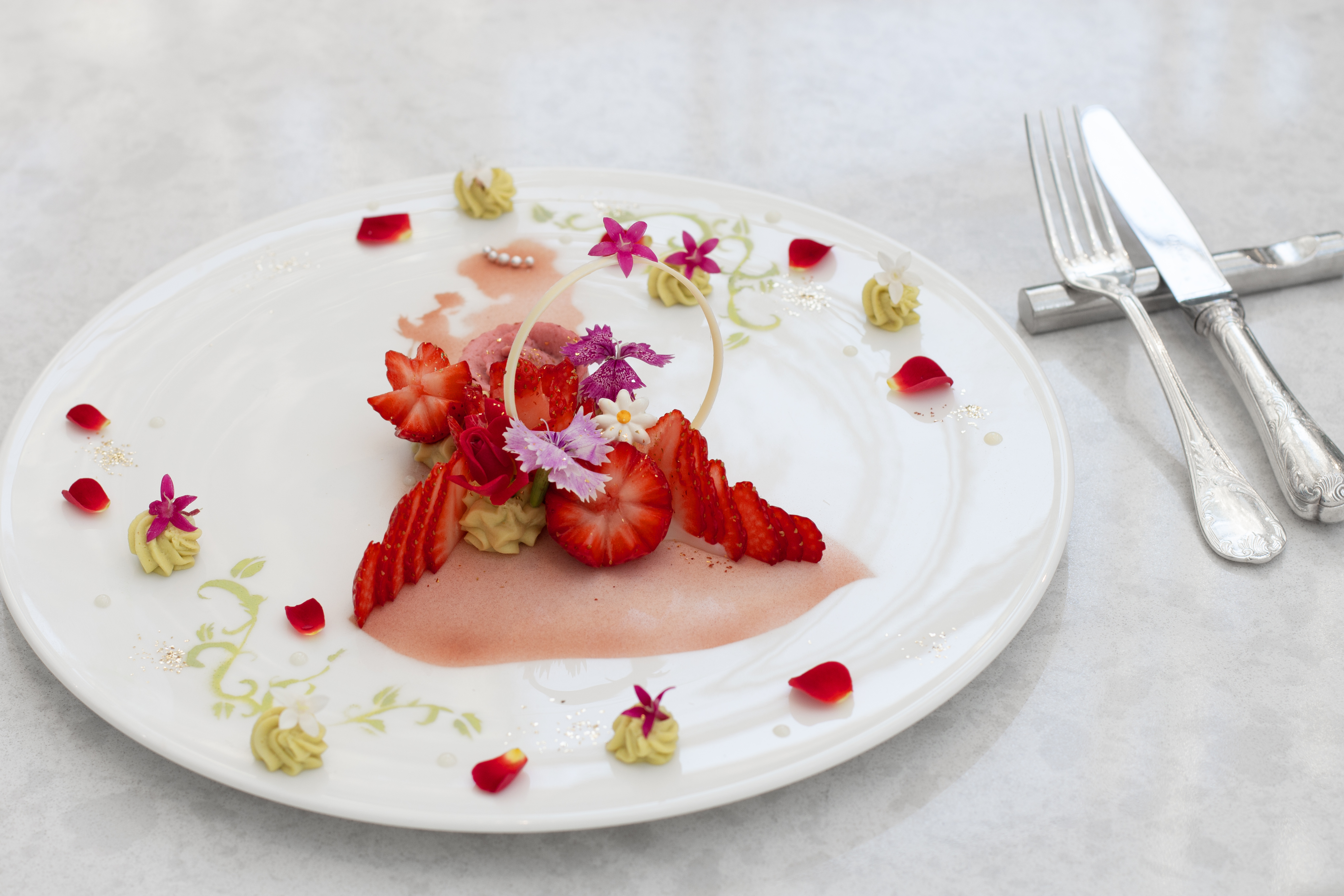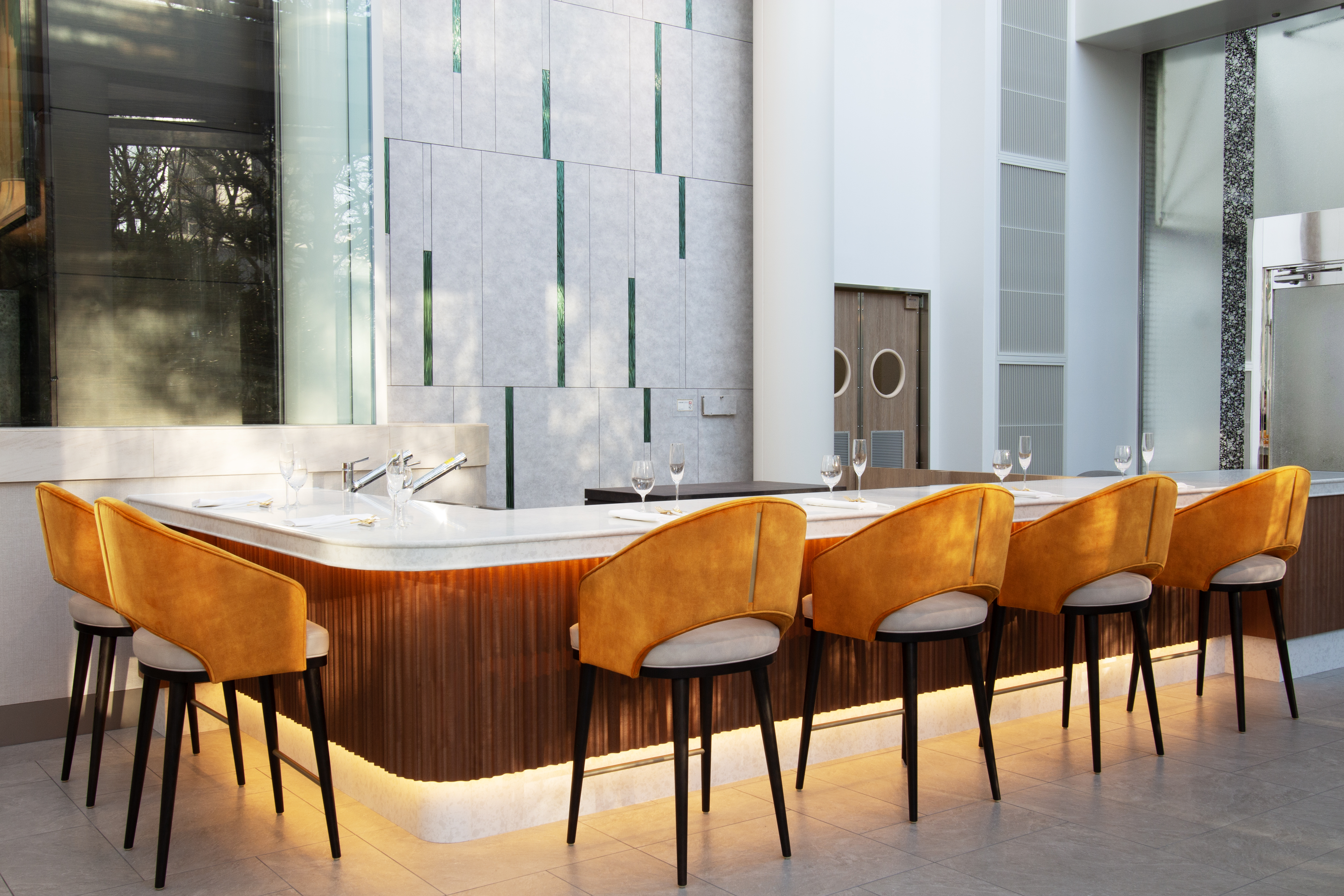 緑豊かな中自然の森を望み、陽光が降り注ぐ開放感あふれるゆったりとした空間が魅力。可愛さ・美しさ・美味しさ・身体への優しさを追求した「Cuteフレンチ」で、ときめく美食体験をお楽しみください。大切なご会食やお祝いのシーンにも最適なソファー席や、おひとりでも気楽にお楽しみいただけるシェフズカウンターを設置。ロケーションの特徴を活かした自然との調和を感じながら至福のひとときを。
