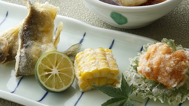 まるで隠れ家のような店内には、お客様がゆっくりとくつろげるカウンター席を用意しております。当店の自慢は季節ごとの食材を贅沢に使った天ぷらの数々。極上の天ぷらと一緒に旬のお造りなどを楽しめるコース料理がおすすめですが、お客様の好きな食材を味わっていただけるようにアラカルトメニューも用意しております。揚げたての天ぷらはまさに絶品。さっくりと揚がった上品な天ぷらを、心ゆくまでお楽しみください。