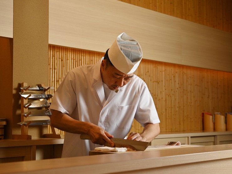 1974年、京都府生まれ。生涯にわたり自分の腕で食べていける仕事を模索し、料理人を選択。まずは京都で技術と知識を深め、その後キャリアを築くために大阪へ移る。料理人としての大半の時間を、この活気あふれる都市で過ごす。自分の店を持つ夢を実現するために場所を探していた際、父親の提案が転機となり、2005年に【紫】を開店。2022年には「SAKE DIPLOMA(酒ディプロマ)」の資格を取得。