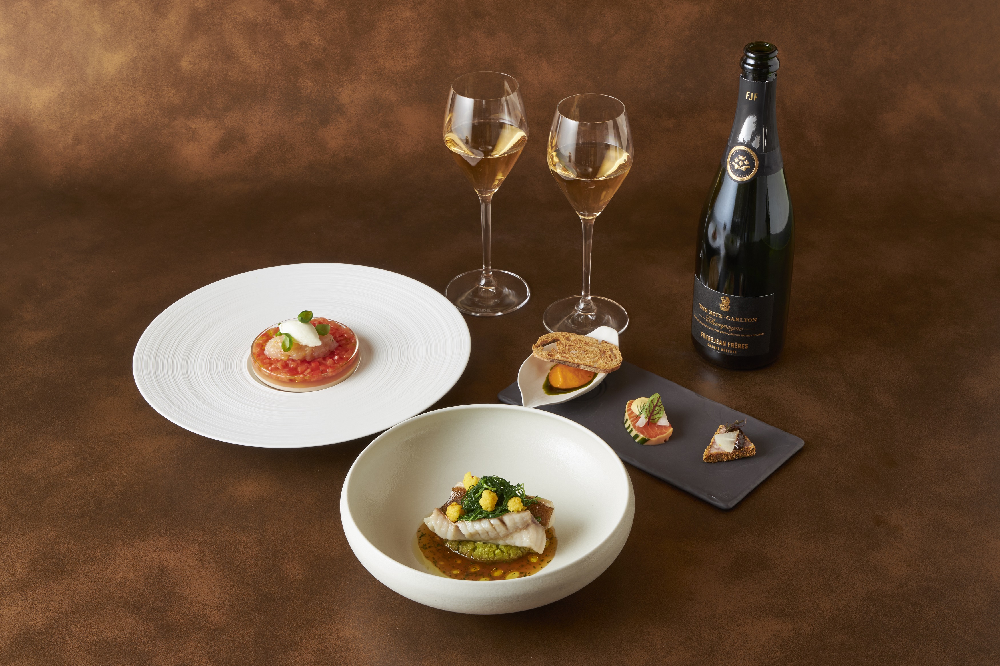 眺望豊かで寛いだ空間の中、上質な食材をフランス料理の伝統的な技法で丁寧かつシンプルに仕上げる本格的美食メニューの数々を厳選ワインとともにご提供いたします。料理長 中野 琢治が、日本人シェフならではの感性を活かし、産地直送や季節ごとに国内外から選び抜く旬の食材を料理に取り入れ、素材そのものの旨味を引き出す、シンプルながら丁寧な味わいを一皿一皿に表現いたします。