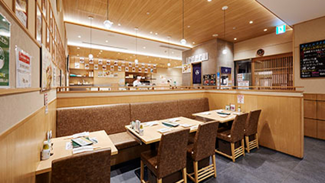 数々の飲食店が立ち並ぶレストランプラザ。その中にある和風の空間。眩い白木のカウンターやテーブルで、絶品の寿司をご堪能いただけます。寿司酢や海苔に至るまで、徹底的に厳選した素材を使用する、こだわりの寿司でございます。使用するネタは、毎日豊洲市場から直送する新鮮な魚介。中とろや炙りホタテ、光物などの海鮮を、山形産のはえぬき米で寿司に仕上げます。中でも、2つの味が楽しめる寿司が、梅丘寿司の美登利、名古屋店独自の名物です。