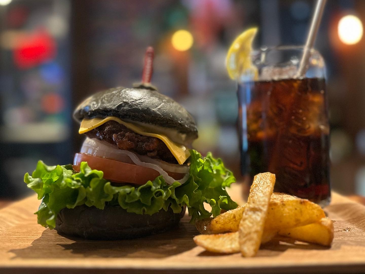 出来るだけ安心食材を選び、丁寧に手作りをしてご提供しております。 また、フレッシュさを味わっていただきたくハンバーガー等は、野菜の鮮度を保つためにオーダーが入ってからカットするなど細かなこだわりも追求。 当店オリジナルの「プレミアムハンバーガー」です。 ◆必食のバーガー 竹炭入りの黒いバンズに、黒毛和牛100%のパティ。 新鮮な野菜の自慢のバーガー。 有機栽培豆の珈琲やお酒もご提供しております。