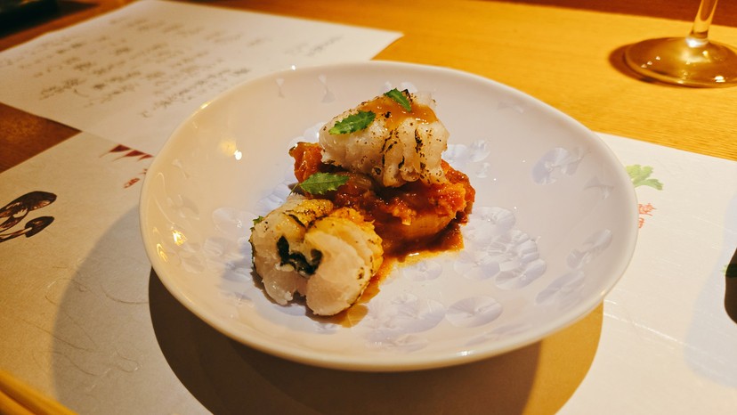 鱧のたたき 夏野菜の煮込み添え