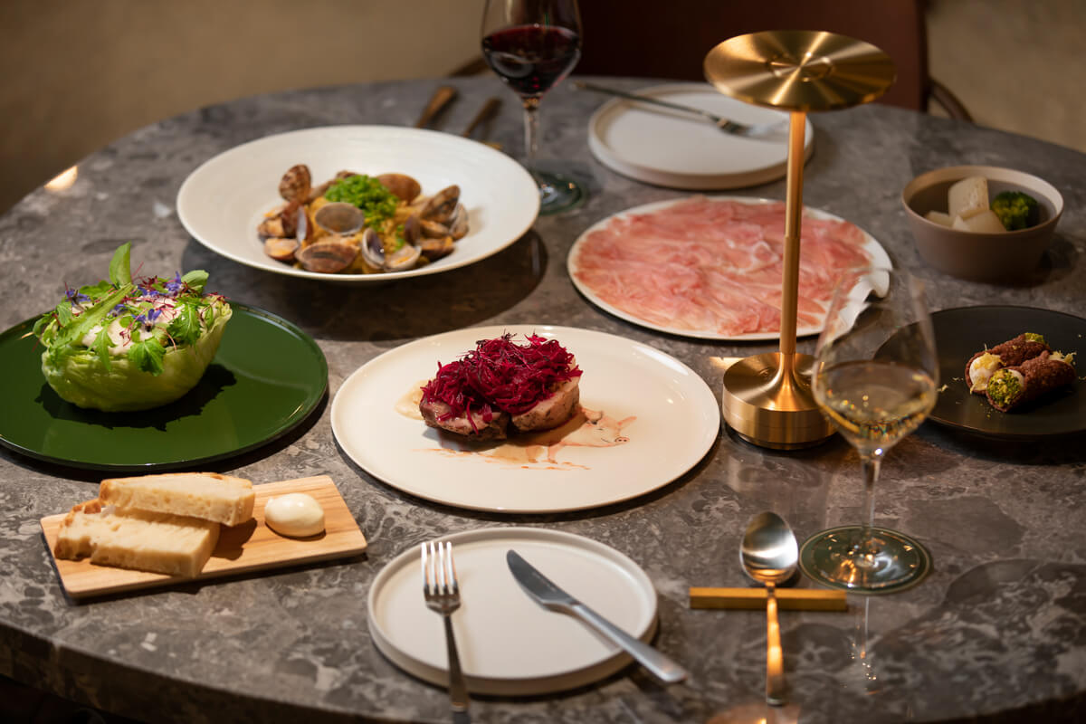 広々とした店内は、心安らぐナチュラルモダンな空気感。京都の落ち着いた雰囲気をそのままに、自然と共鳴するカジュアルなレストランを目指しました。当店の主役は、イタリアで一つ星に輝いたシェフが紡ぐ、野菜メインのヘルシーなメニューたち。素材の味を十分に楽しめるよう、シンプルで飾らない調理方法にこだわりました。新鮮な季節野菜をふんだんに使った、贅沢なお料理を心ゆくまでお召し上がりください。