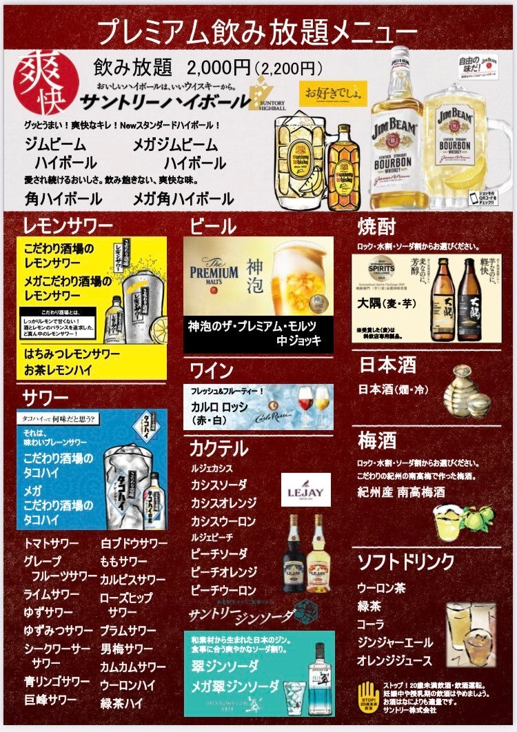 ・2時間飲放付コース4,400円~
