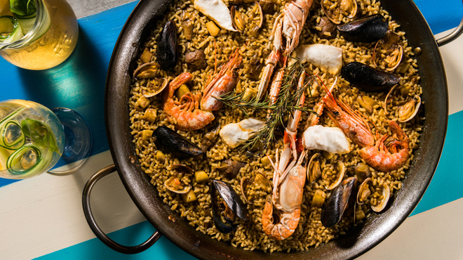 バルセロナの地元っ子はもちろん、ハリウッドスターをも魅了する人気シーフードレストラン。日本1号店は海の家を思わせるような開放的な空間です。看板メニューのパエリアは一般的な調理法とは異なり、直火でじっくり炊き上げるのが特徴。魚介や肉、野菜から出た旨味がぎゅっと凝縮し、噛むほどに美味しさが広がります。パエリアと相性の良い前菜やサングリアも豊富に取り揃えています。