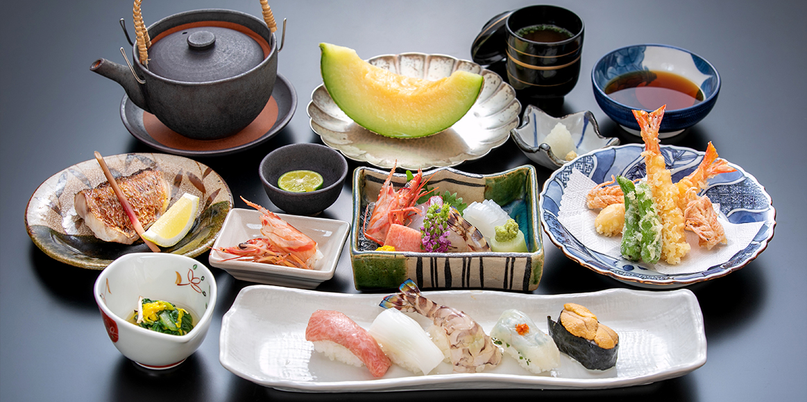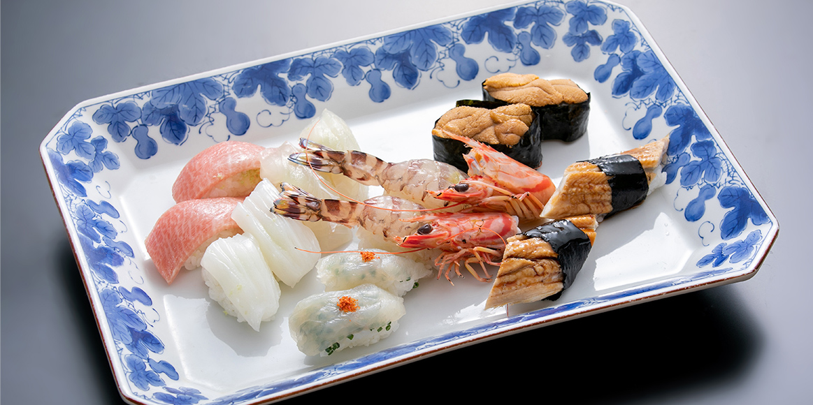 食材は主に山口県産・九州近海で水揚げされた魚介類を毎朝市場で大将が吟味しお出ししております。様々な旬のネタが使われたお寿司や、今からがまさにシーズンのふくコースなど、ぜひご賞味ください。