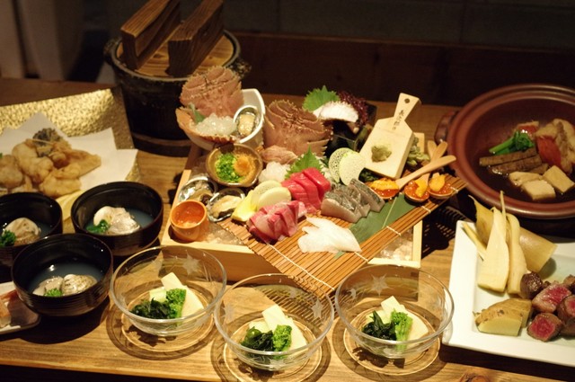 親不孝通り沿いにある店内では、天神の喧騒から離れ落ち着いた雰囲気で料理を楽しめます。「博多ならではの新鮮な魚料理と旬の日本酒」を存分に味わえる、お客様に合ったメニューを豊富にご用意しています。単品料理、刺身盛り合わせを含む定番コースの他、特別コースとしてふぐ・あら・すっぽんなどの「○○づくしコース」がございます。また飲み放題メニューでは、「月替わり厳選日本酒各種」を料理と一緒にお楽しみいただけます。