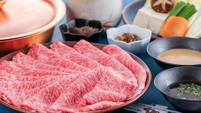 宴会場、座敷席も備えた和のレトロな店内で、自家製ゴマダレのしゃぶしゃぶや関西風すき焼きがコースで味わえる。