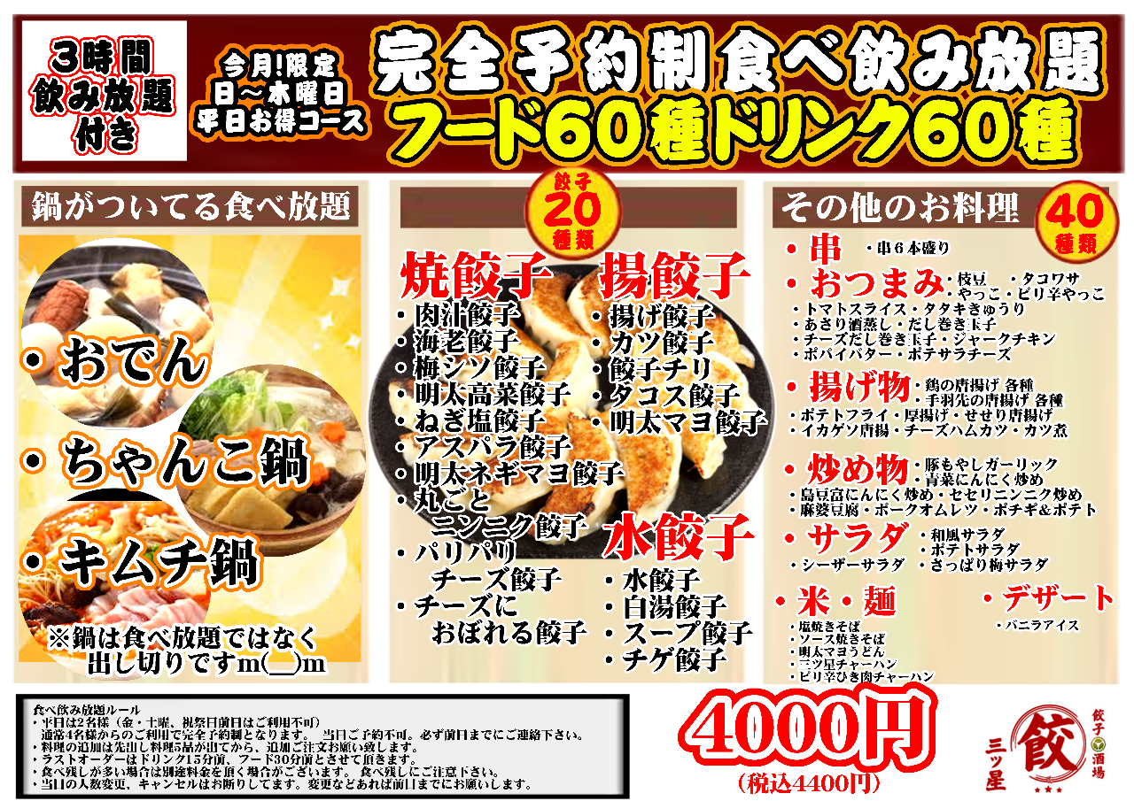 | 店名 | 大衆餃子酒場 三ツ星 |