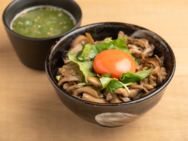 旬の素材をふんだんに使ったオリジナルメニューです。季節ごとに異なる素材の組み合わせが楽しめ、秋にはきのこのソテーと鶏ミンチを組み合わせた一品が登場。素材の持つ自然な風味が口いっぱいに広がります。