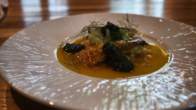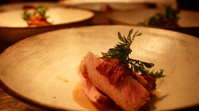 岐阜県のちょうど中央部に位置する郡上市。高原が広がる、ひるがの地区や古い街並みが残る八幡町など、さまざまな風土・自然に囲まれた土地です。「RAVI」は、そんな多様な環境が生み出した郡上食材で、フランス料理を作るお店です。東京や名古屋のフレンチレストランに勤め、伝統的な技法と最新の技術を学んできたシェフが作りあげる、目の前の食材と向き合い、生まれた一皿。土地の恵みをいただいていることを感じられる、驚きのフレンチをお楽しみください。