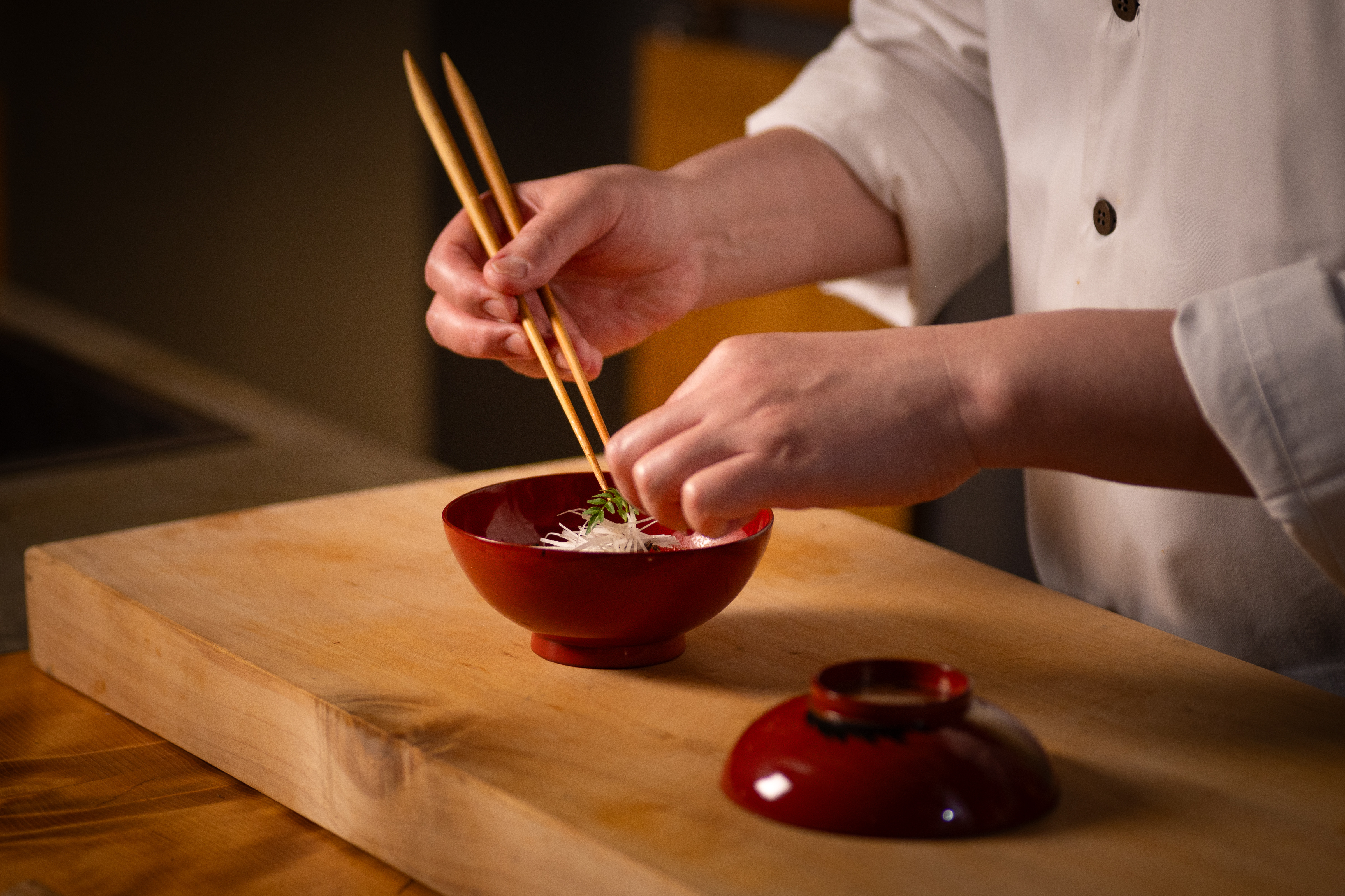愛媛県松山市のモダン和食と鮨店。瀬戸内の新鮮な食材を中心に、個々が持つポテンシャルを最大限に引き出せるよう手間をかけ、素材の出会い、組み合わせの楽しさと共に五感で味わう絶品の料理を提供いたします。モダン和食は意外性があり、ワクワクする気持ちや驚きを。瀬戸内の魅力が訪れる度に新しい出会いとなります。鮨はネタの旨味が一番上がる瞬間を狙って、魚種により処理を施し、羽釜で炊いたキリっと粒立ちの良いシャリであん藤独自の感性で仕上げます。あん藤の食事が皆様の日常に彩りを添えるものとなりますように