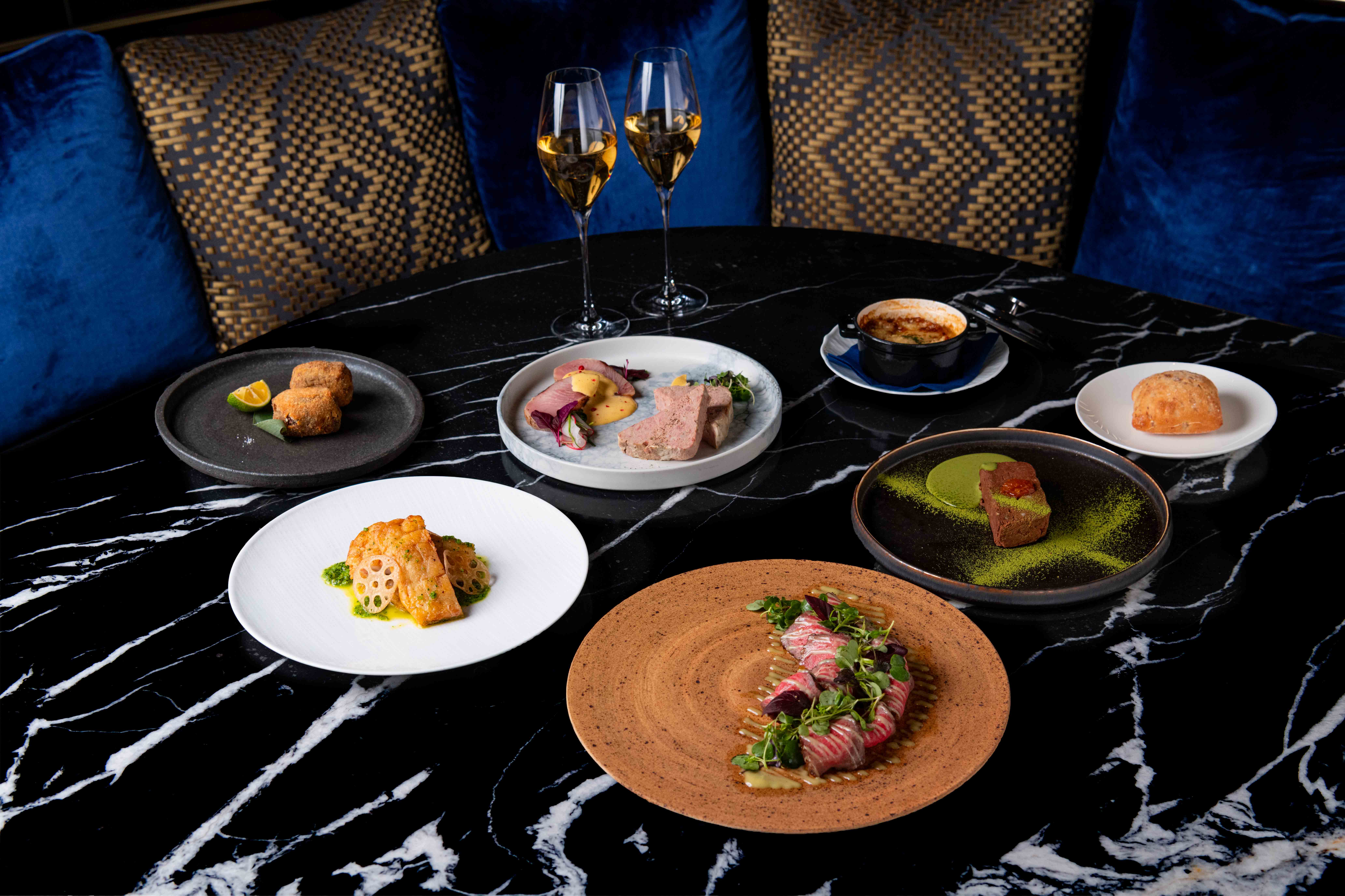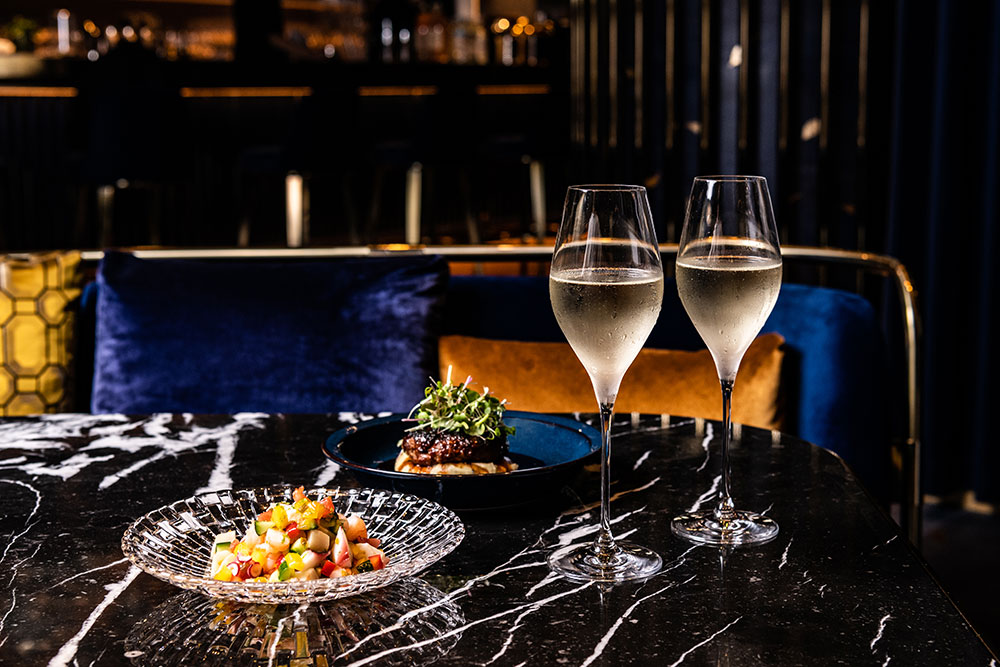 足を踏み入れると、日常から隔離された、別世界への入り口。シント=トロイデンVVのチームカラーである黄色×青色で統一されたラグジュアリーな空間です。サーモンマリネや和牛スライダーなど、前菜からメインディッシュまで存分にご堪能いただけます。アントワープやブリュッセルなど、ベルギーの地名にちなんだオリジナルカクテルもご用意しておりますので、お食事と一緒にお楽しみください。