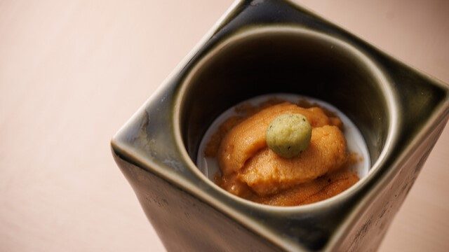 お客様が自然を感じられるよう、木材を積極的に用い、洗練させた和の空間。温もりを感じられる木のカウンターの目の前で、こだわりの鮨を提供いたします。職人がひとつひとつ丁寧に握りあげる、極上の鮨でございます。鮨と共に、職人が手掛ける日本料理もご堪能ください。お客様がただ単に美味しく味わうだけでなく、料理によって感動してくださるよう、時には西洋料理の要素も取り入れながら、日々メニューを考えております。見た目や香りにもこだわった日本料理ですので、五感でお楽しみいただけます。