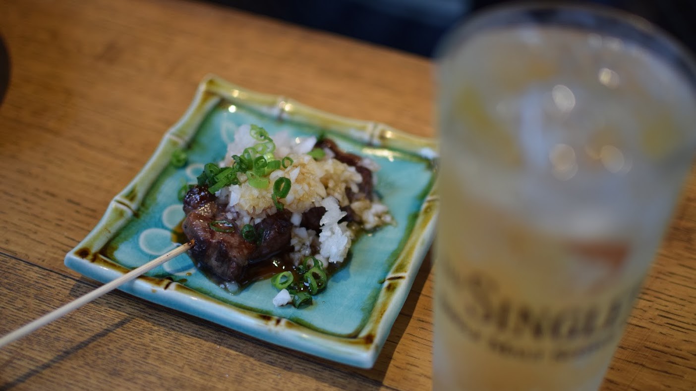 御園座の裏手にひっそりと佇む隠れ家で、和モダンな空間が広がる店内で、豊富な種類の焼き鳥をお楽しみいただけます。特に評判の野菜捲き串は、採れたての野菜を豚バラ肉で巻き、じっくりと焼き上げることで、見た目も味も食欲をそそります。胡麻カンパチや羽根つき一口餃子など、一品料理も充実しており、冷凍フルーツサワーやお茶割りなど、厳選された飲み物とともに、心ゆくまでご堪能ください。