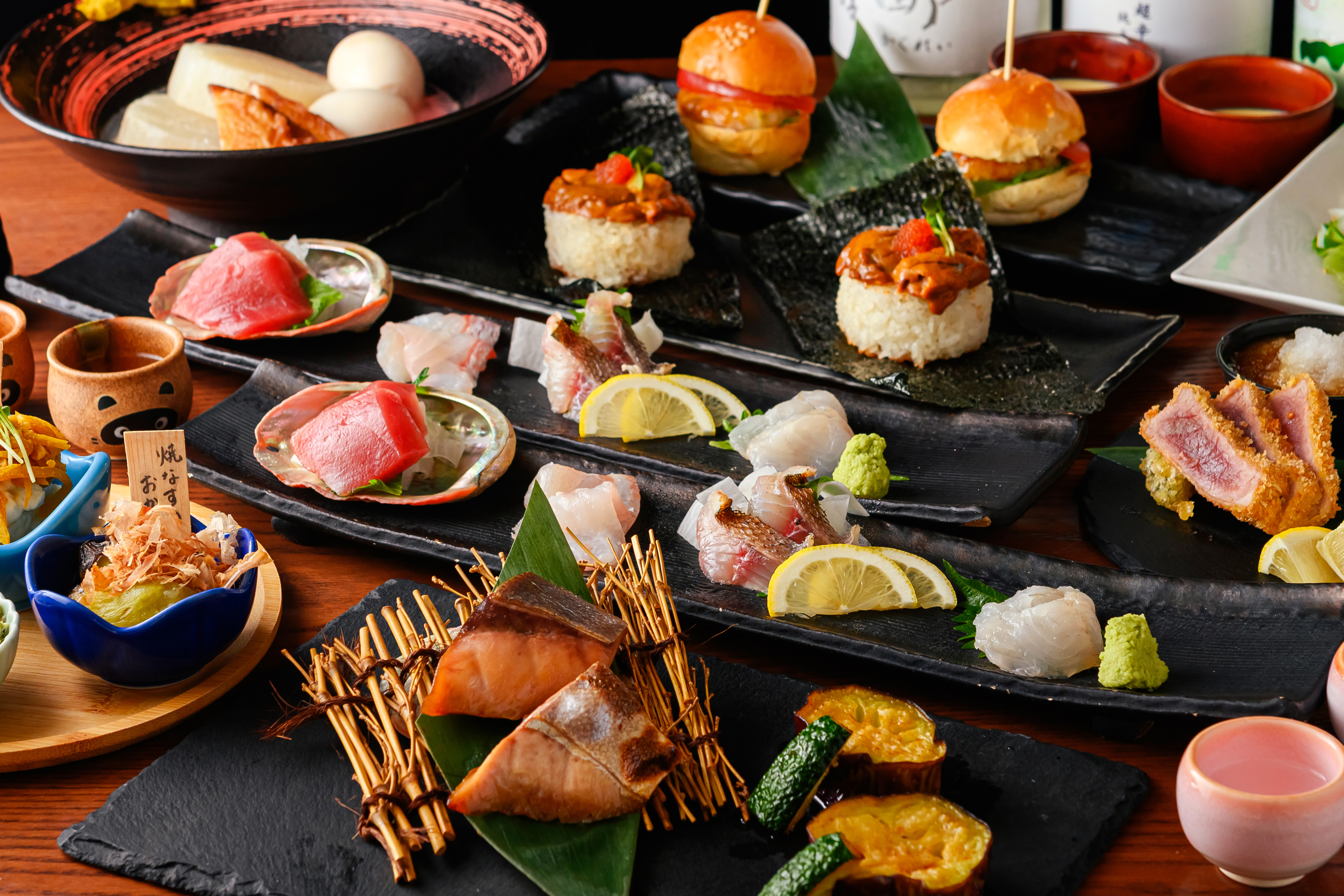 お刺身盛り合わせやうにぎりなど、ととけむりの名物メニューが堪能できる一番人気の宴会コースです。