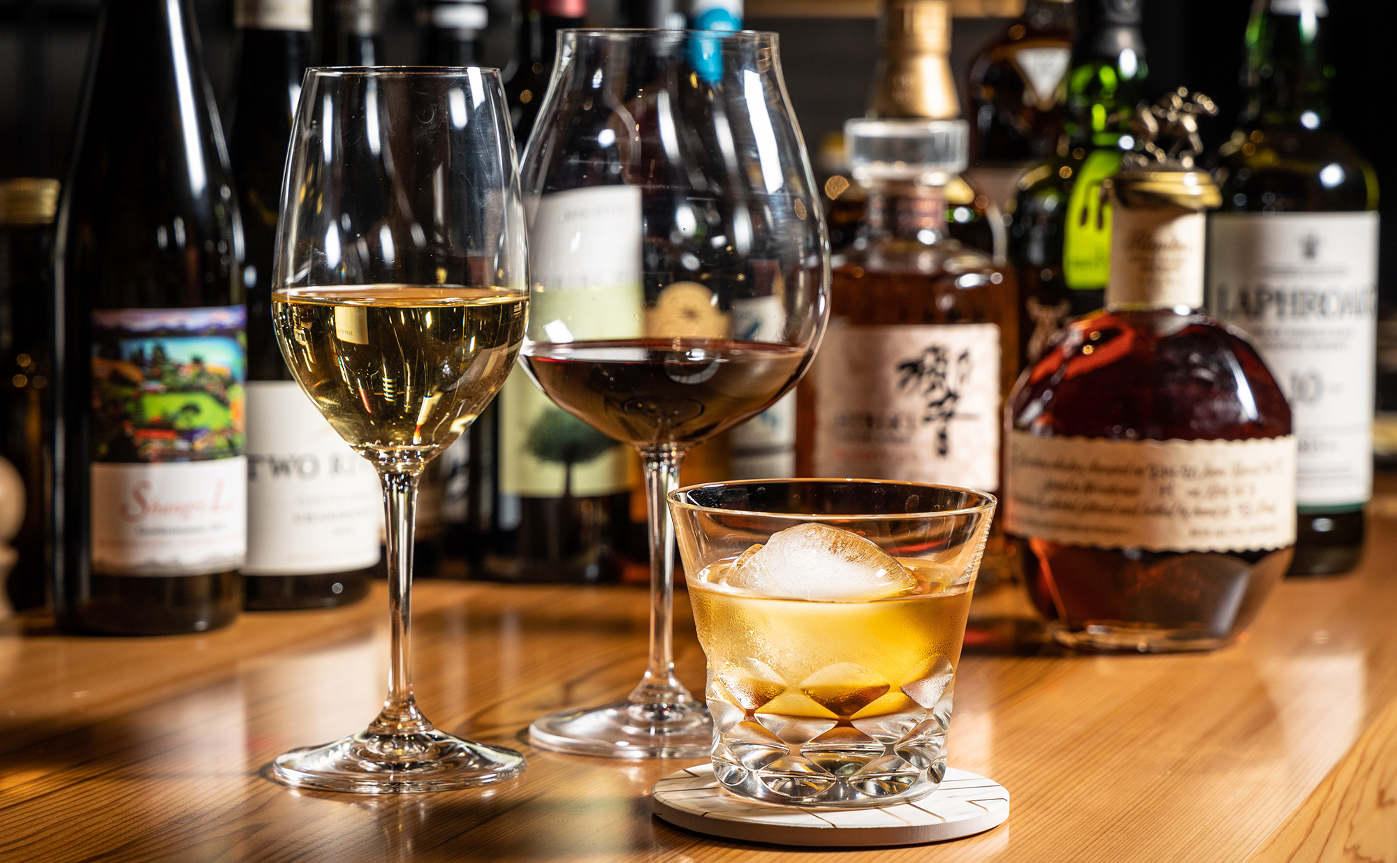 国道から一本入ったところにある隠れ家的な店内に入ると、黒と木目を基調にしたシックで落ち着きのある空間が広がります。メニューはコース料理のみです。季節やその日の仕入れによって出される料理は変わります。出される料理は地元出身で長年にわたり食の世界で研鑽を積んできたシェフが西洋と東洋の料理の枠を極めて創り上げ、唯一無二の逸品ばかりです。料理のほか現地に足を運んで選び抜いたワインなどのドリンクも用意していますので、絶品料理とともにお楽しみください。