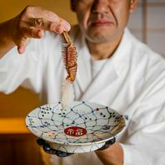 1973年3月5日生まれの50歳、埼玉県出身。小学生の時、カウンターで鮨を握る職人のかっこよさに憧れ、鮨の世界に。高校卒業後、丸の内の【すし屋の勘八】に弟子入り。ここで3年間の修業の後、渋谷の老舗【亀井鮨】の門戸を叩く。7年間研鑽を積み、和食をきちんと学ぶべく京都へ。3年間腕を磨いて帰郷。地元埼玉で京風創作料理店を開く。13年間続け、【勘八】に料理長として復帰。その後【新富 きた福】の料理長に就任。