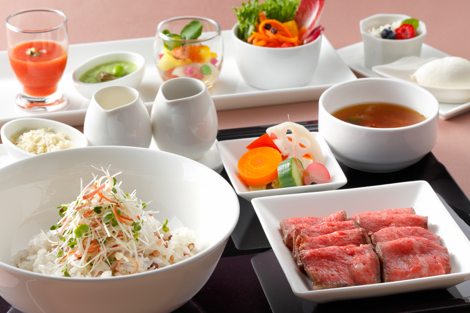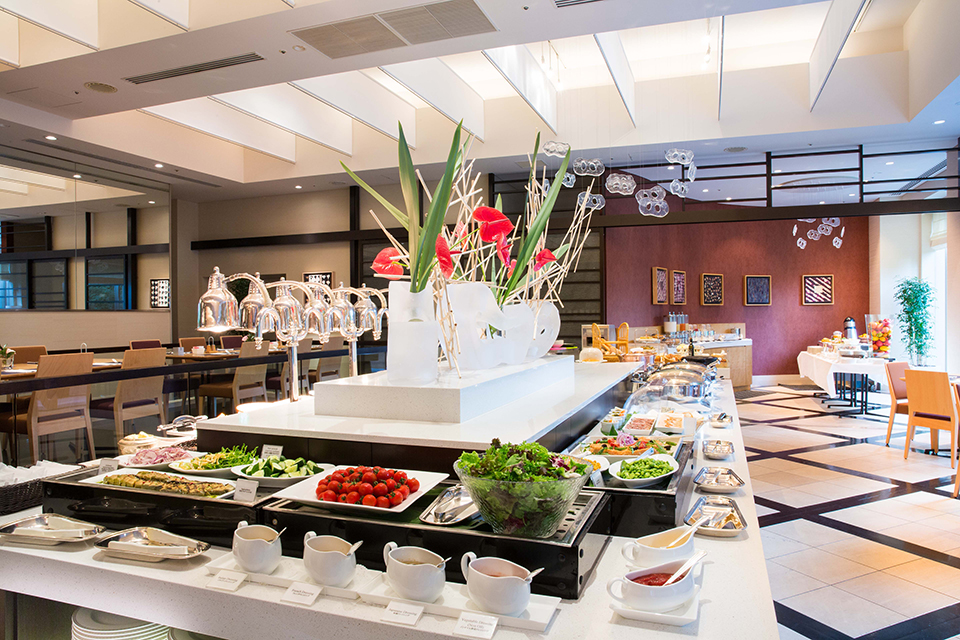 一歩店内に入ると、木目調の落ち着いた空間が広がっていて、大きな窓からは緑豊かな美しい庭を堪能することができます。毎日の仕事など忙しい日々を忘れさせる癒しの空間となっています。メニューは世界各地の色々な料理が揃えられているのが特徴で、松阪ポークのグリル 、ビッグハンバーガー 、サンドウィッチプレートなどが大変人気です。デザートも豊富ですが、特にホテルのパティシエが作るケーキとコーヒーが美味しいと評判いただいております。