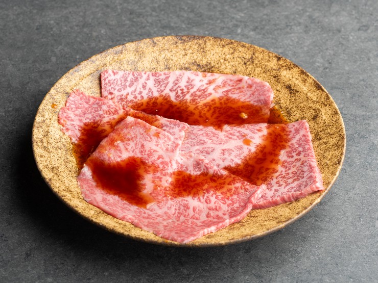 きめ細やかなサシが入った、目にも美しい極上肉をサッと炙った人気メニュー。自家製タレと厳選した卵黄に絡めていただけば、格別の味わい。まろやかな味わいととろりとした食感、肉本来の旨みが感じられる逸品です。