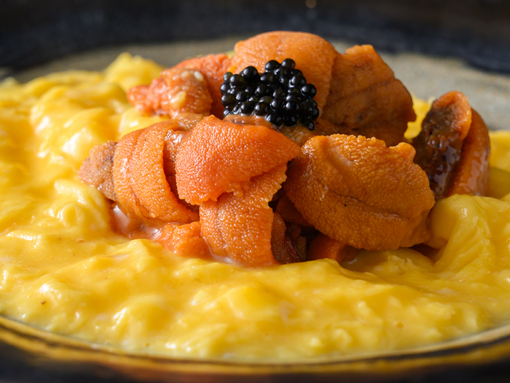 雲丹とスクランブルエッグ キャビア乗せ