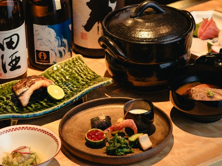 コースにはセミセルフ形式の飲み放題が付いています。全70~80種類。中でも日本酒好きの店主自身が、自ら選び抜いた日本酒のラインナップは、レアなものも多く通好みの品揃えになっています。