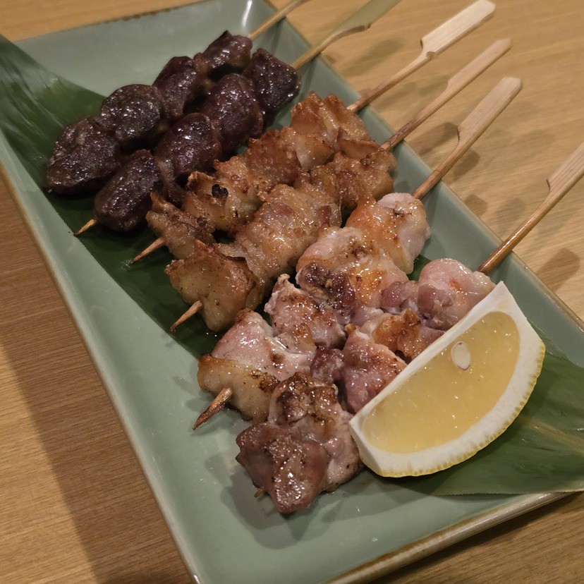 毎日、職人の手刺しによって串が完成。食材の大きさや炭火の勢いを見ながら、表面はカリッと香ばしく中ふっくら焼き上げます。味は、好みに合わせて塩かタレを選択可能。