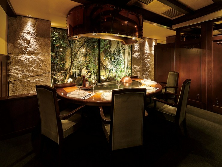 1500坪の広大な敷地に広がる上質な空間で、アンティークの調度品に囲まれながら、庭の美しい景色を眺めて過ごす特別な時間。鉄板焼のパフォーマンスを目の前で楽しみながら、心身ともに満たされます。