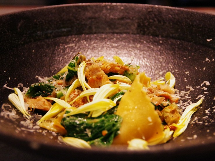 姉妹店の焼肉店でも評判の黒毛和牛を使用。ふんだんに散らされた黒トリュフが、シェフの修業先でもあるイタリアのピエモンテを想起させてくれます。季節ごとに味を調整し、一年を通して贅沢なおいしさを提案。