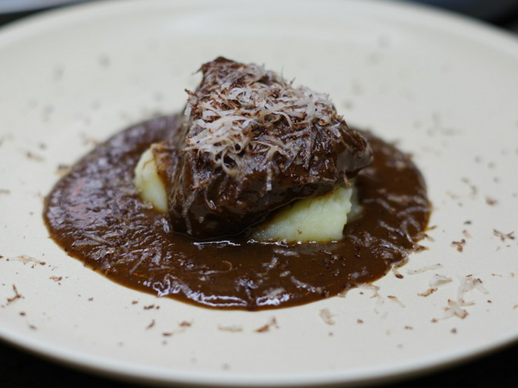 時間をかけてじっくり煮込んだ、柔らかく濃厚な味わいの『黒毛和牛の赤ワイン煮込みピエモンテ風』