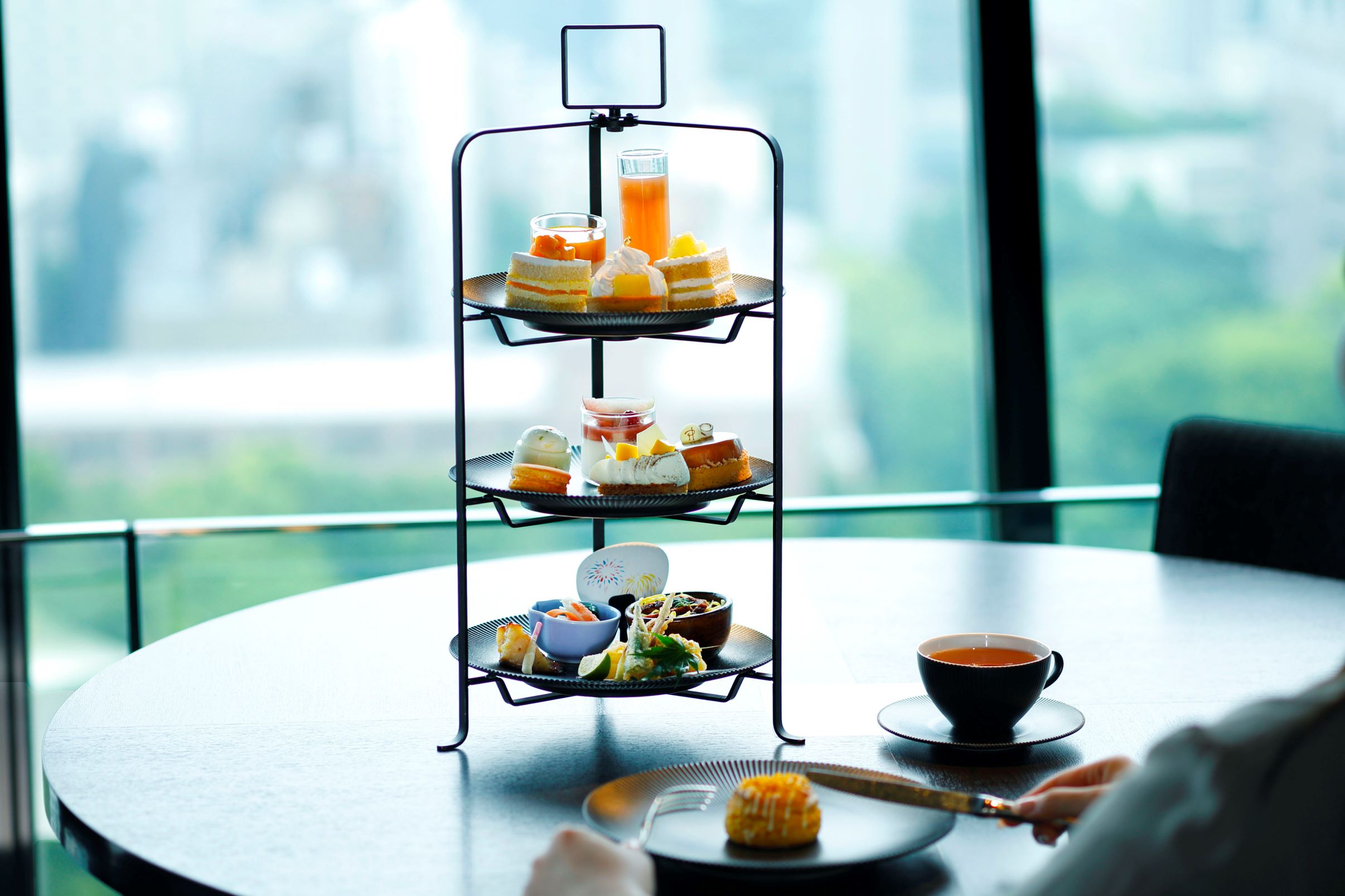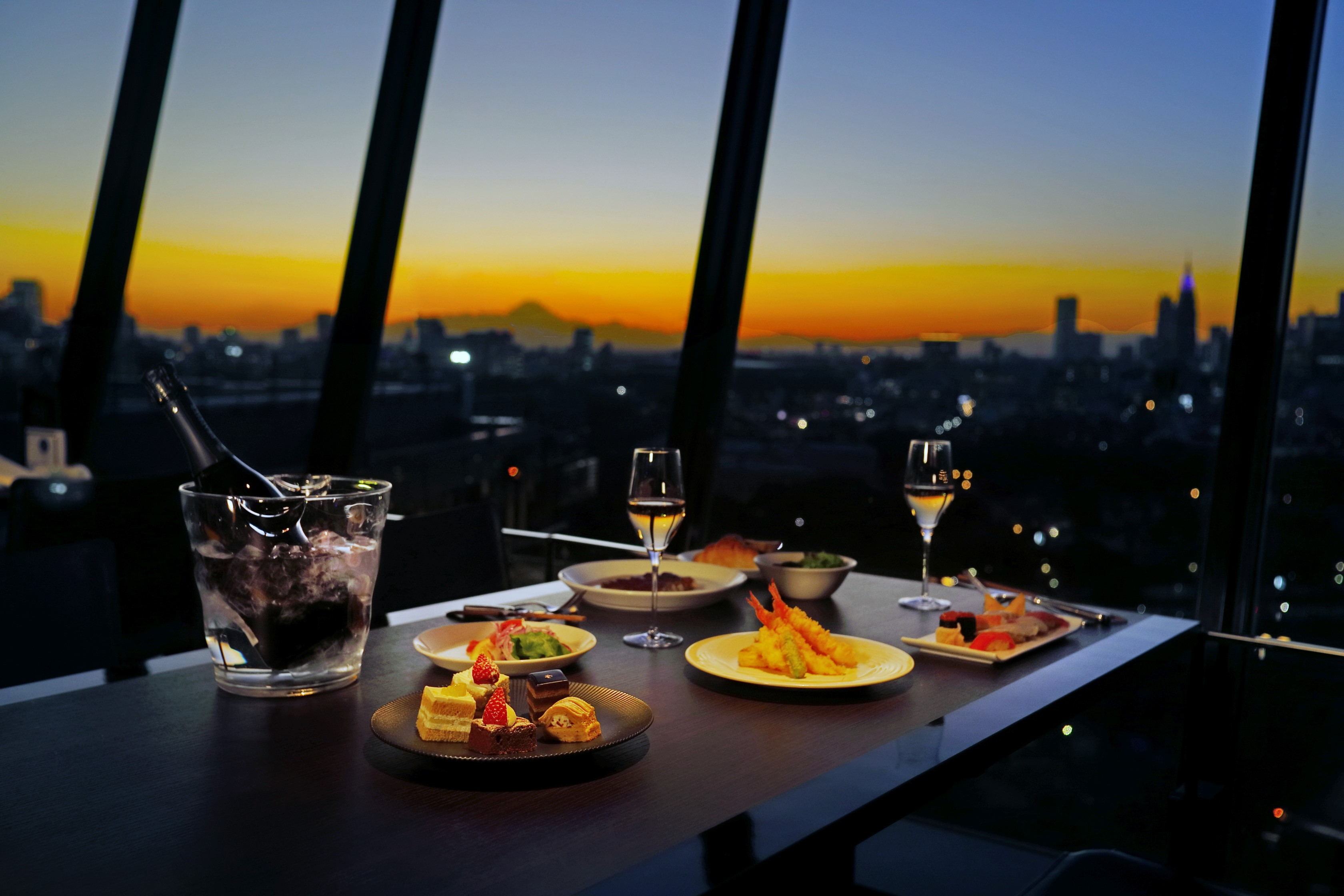 ステージキッチンから提供される、和・洋・中&スイーツの多彩な料理の数々と、晴れた日には富士山や都心を一望できる360°パノラマの眺望が魅力のビュッフェダイニング。なかでも職人が握る寿司、目の前で焼き上げる鉄板焼、季節の魚や旬の野菜を使用した天ぷら、更には、ホテルニューオータニのシグネチャー「スーパースイーツシリーズ」やピエール・エルメ・パリのスイーツもお好きなだけお愉しみいただけます。
