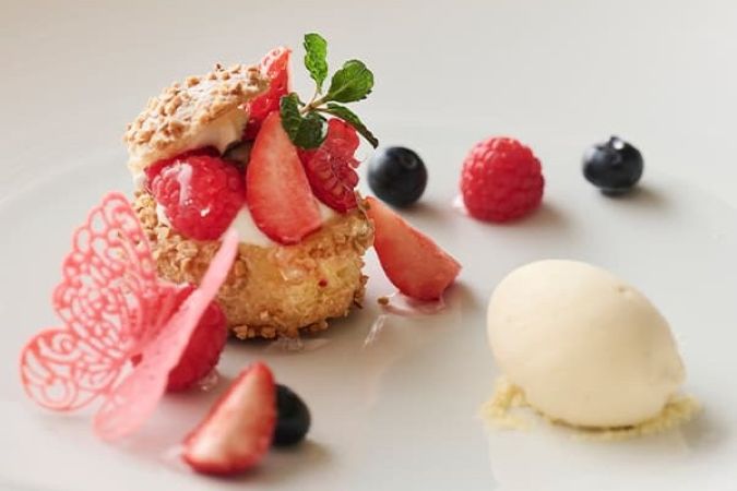水都・大阪のランドマーク・中之島フェスティバルタワーの最上階に位置する「ラ・フェット ひらまつ」は、美しい眺望に囲まれた贅沢な空間。北は淀川と北摂の山々、南には大阪城、西には遠く大阪湾を一望できます。コンセプトは「モダン・クラシック」。伝統的なフランス料理の技法を大切にしながら、日本人の持つ感性で繊細かつ洗練されたフランス料理をご提供しています。大きな窓の開放感あふれるダイニングで、極上のフランス料理をお楽しみください。