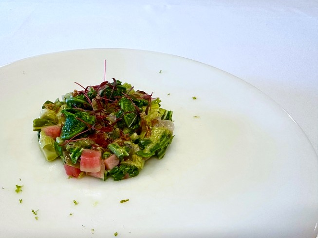 地元の季節野菜や、彩も美しい食用花なども使用。秋田ならではの食文化も楽しめる、目にも華やかなその時々の前菜をいただけます。(コース料理一例)