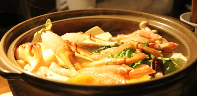 蟹ダイニングかのんでは日本酒や白ワインにぴったり合った、新鮮な蟹料理を楽しめます。2つのコースメニューがあり、どちらも蟹づくしの料理を提供しています。予約制なので店内は落ち着いた雰囲気です。伝統的な内装と多すぎない席数でゆったりとおくつろぎ頂けます。新鮮な蟹を楽しんで頂くために、営業期間は冬期のみの営業となっていますのでご注意ください。美味しい蟹料理と美味しいお酒で、楽しい一時を演出します。